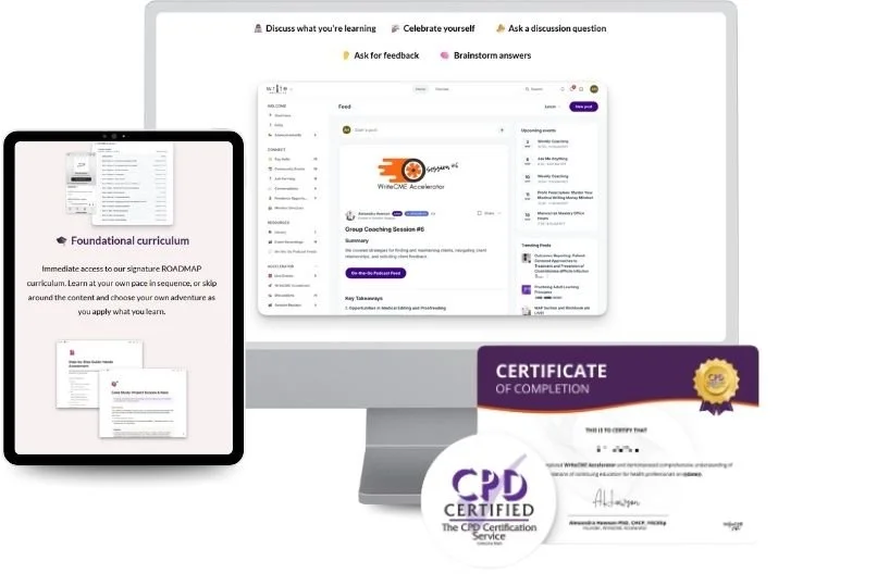 WriteCME Pro is where aspiring CME writers develop inside the field instead of outside it.